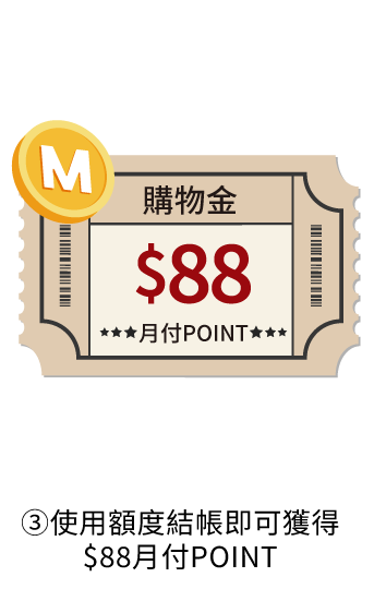 至指定通路消費,除享店家提供的「購物贈禮」或「超值特惠價」外,月付大人再加碼送您$100元優惠代碼,可現折消費金額!